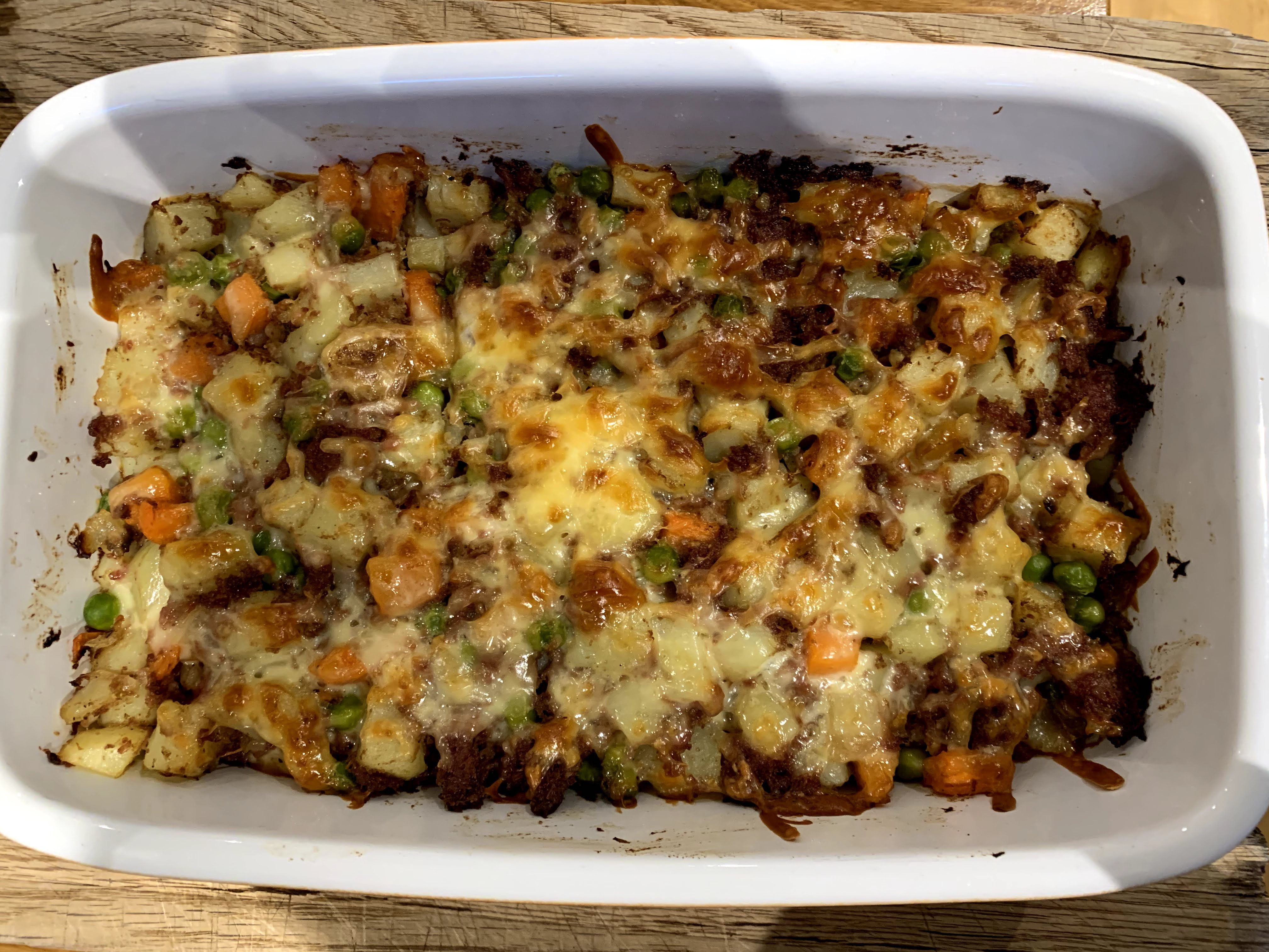 Jemma and I have had disagreements about whose family recipe is the best. Both our parents cooked it in a different way. Hers was more of a mash with the corned beef and veggie mixed in. My mums was a chunky mix of veggies and potatoes with the corned beef mixed in. I’m not sure if my mums ever had cheese on the top, but I thought it would be ace baked in the oven, so that’s my version. Either way, there is no denying that it is a decent comfort meal with a dollop of ketchup on the side